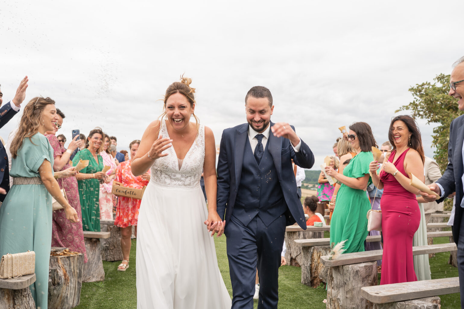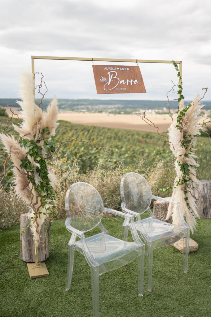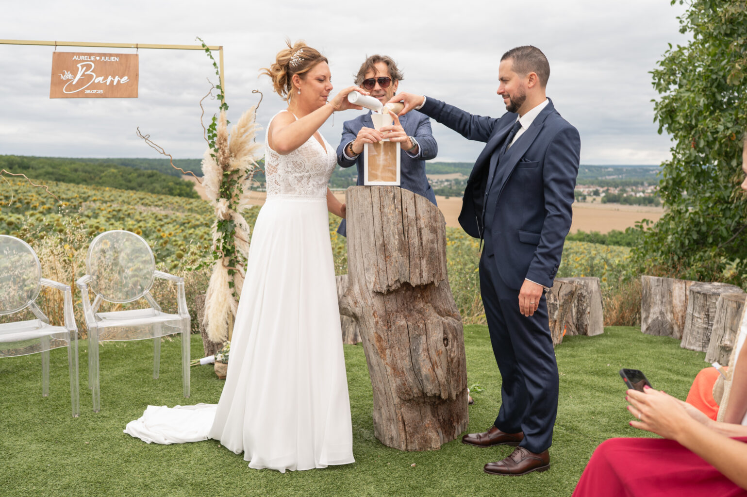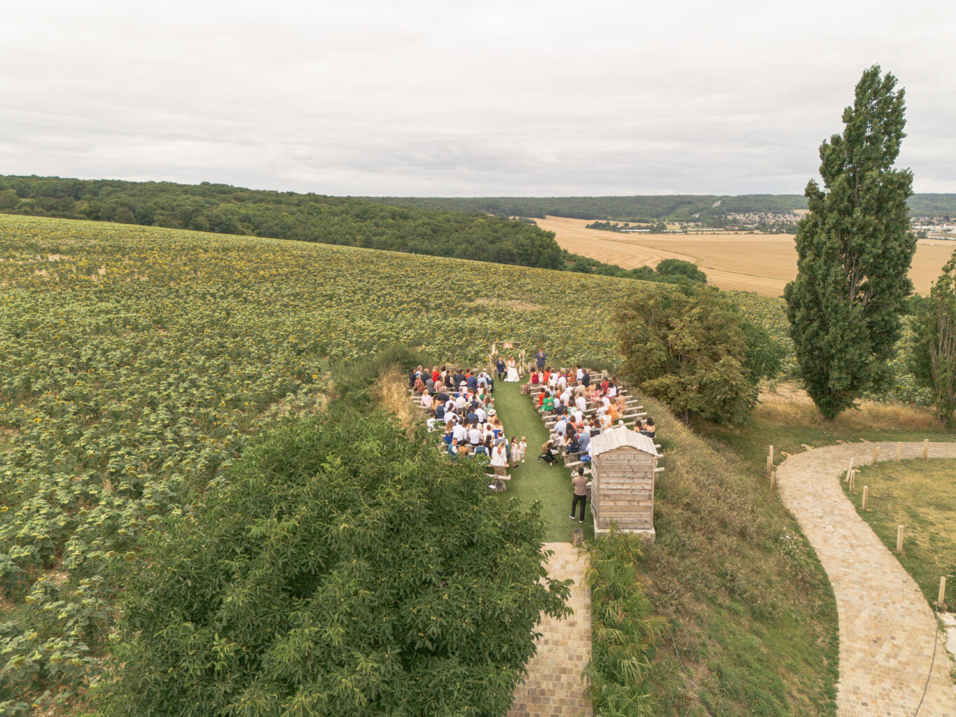 Mention spéciale pour le lieu de la cérémonie en extérieur, en hauteur entouré de champs de tournesols à la période où j’y suis passé.